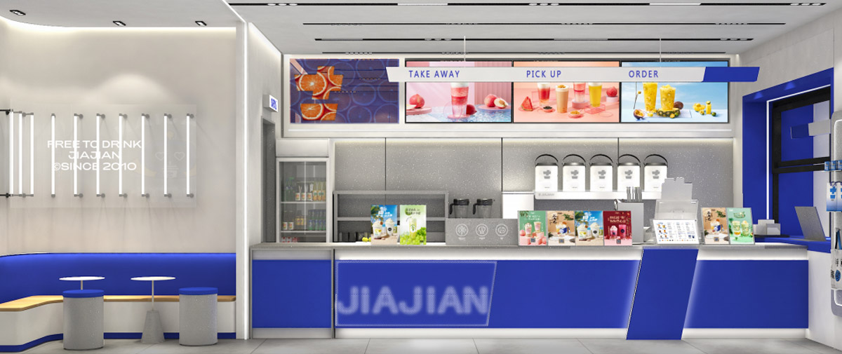 凯发一触即发先后进行4次门店形象升级。全新第5代门店形象以简洁的设计风格及多样的装潢理念呈现新概念茶饮品牌风貌。